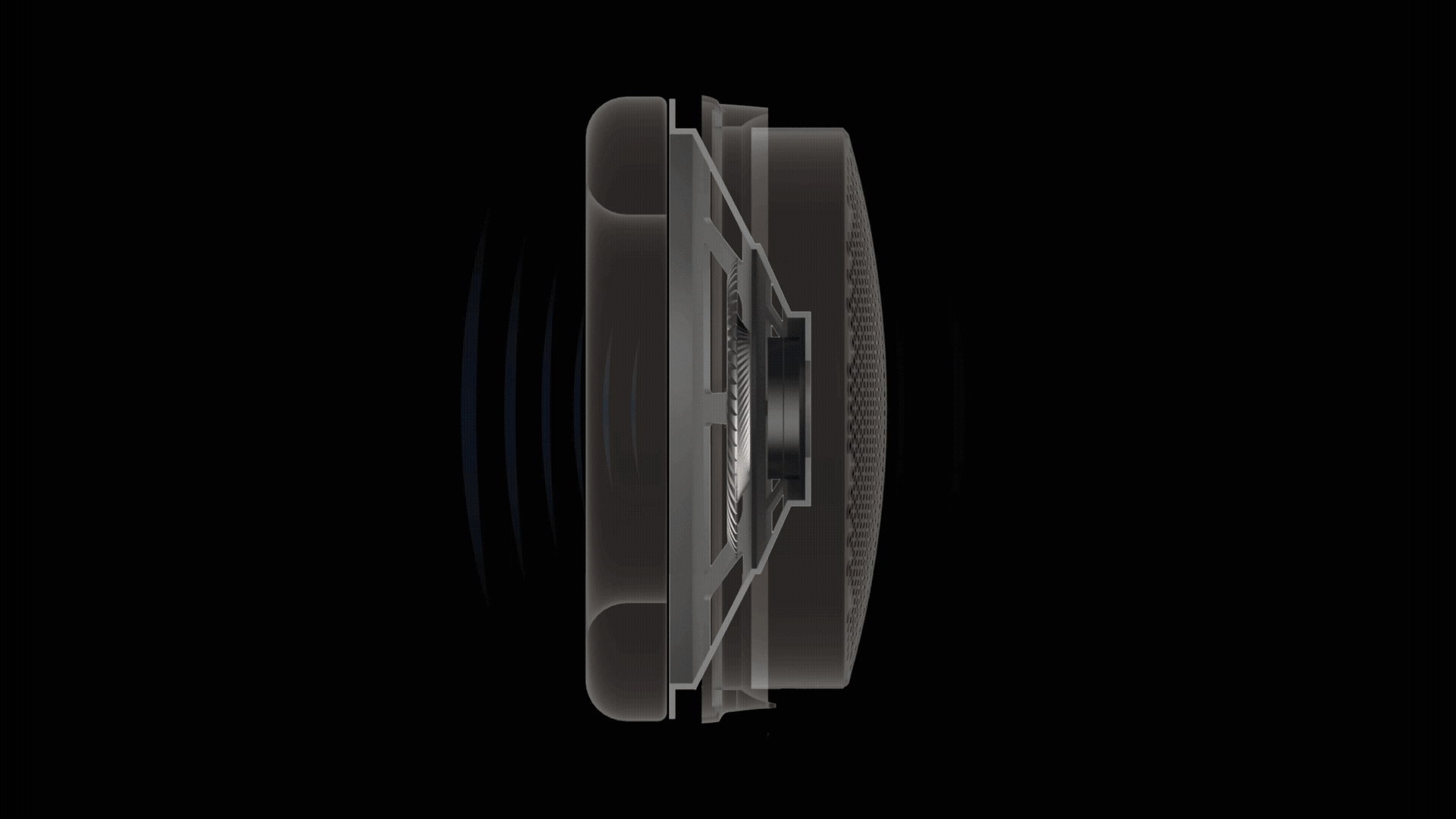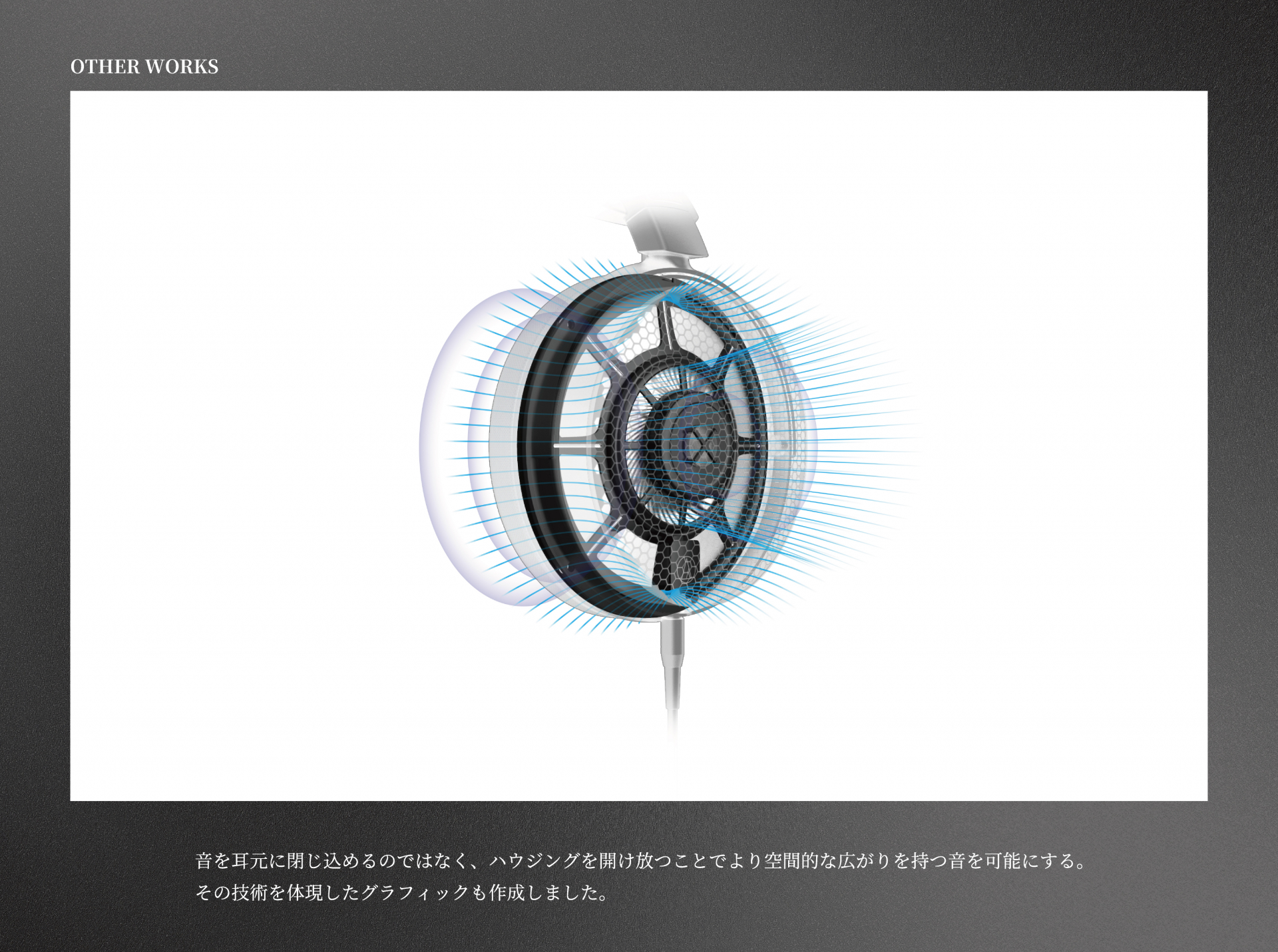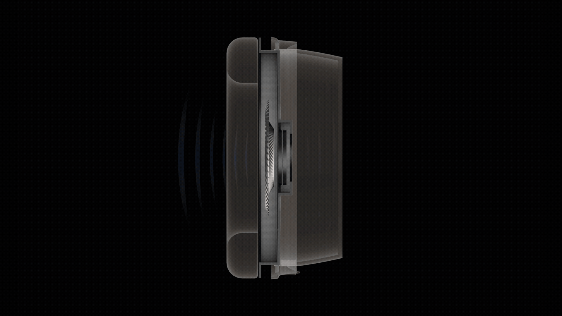 オーディオテクニカが培ってきた音響技術の粋を集めた比類なきドライバー設計「True Open-Air Audio」 ヘッドホン内で空気の流れをコントロールし、より自然な振動板の動きで原音を忠実に再生する精密な機構をモーショングラフィックで繊細に表現しました
